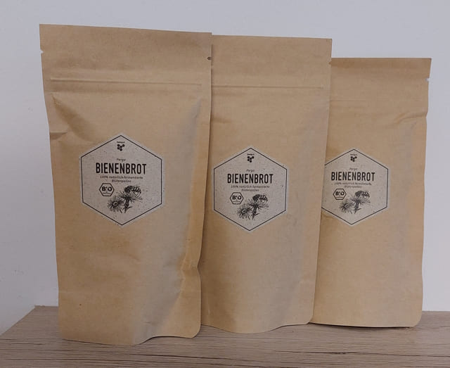 Bienenbrot, auch Perga genannt, sammeln die Bienen als Blütenpollen. Im Bienenstock wird dieser Pollen mit Honig und Lactobakterien versetzt, fermentiert und damit haltbar gemacht. Es ist die Kraftnahrung, um neue Bienen heranzuziehen. Perga in Joghurt oder Saft einrühren und kurz einweichen lassen. Tagesempfehlung sind 1-2 Esslöffel am Tag, ebenso geeignet als Snack statt Süßigkeiten. Menschen mit Pollenunverträglichkeit oder Allergie sollten das Perga erst körnchenweise testen. Bei Nebenwirkungen sollte der Gebrauch eingestellt werden. Außerhalb der Reichweite von Kindern aufbewahren. Suchen Sie Rat bei Ihrem Arzt oder Heilpraktiker.