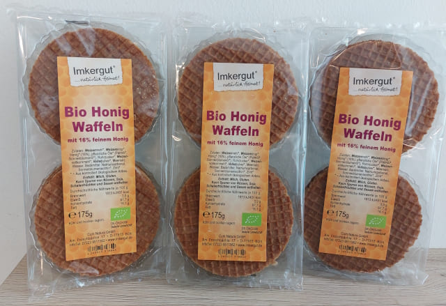Zutaten: Weizenmehl*, Weizensirup*, Honig* (16 %), pflanzliche Öle* (Palmöl*, Sonnenblumenöl*), Rohrzucker*, Weizenvollkornmehl*, Volleipulver*, Meersalz, Wasser, Backmittel: Natriumcarbonat, Sonnenblumenlecithin*, Zimt*